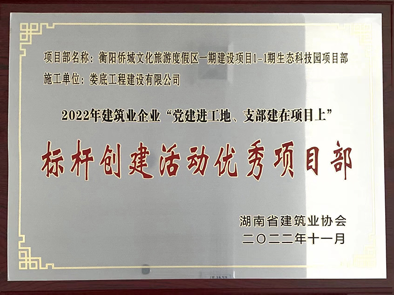 2022年衡陽僑城文化旅游度假區(qū)一期生態(tài)科技園項(xiàng)目標(biāo)桿創(chuàng)建活動優(yōu)秀項(xiàng)目部獎牌