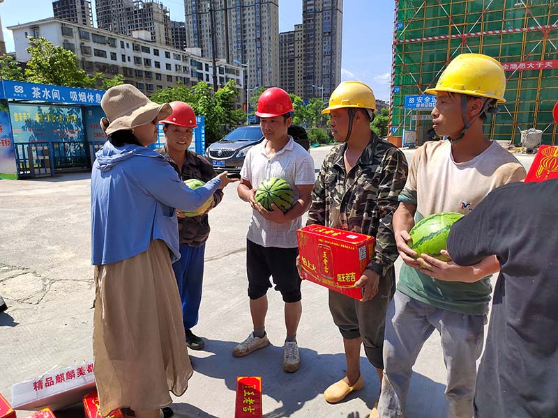 活動(dòng)中,公司黨支部帶領(lǐng)項(xiàng)目部黨小組成員及工程部同事與施工人員親切交談,詳細(xì)了解他們的生產(chǎn)生活、防暑降溫情況,并送去了西瓜、涼茶等防暑降溫物資。支部書記何林叮囑項(xiàng)目部管理人員要及時(shí)掌握高溫天氣信息,合理安排現(xiàn)場(chǎng)作業(yè)時(shí)間,預(yù)防高溫中暑,并勉勵(lì)他們?cè)诮窈蟮墓ぷ髦,繼續(xù)發(fā)揚(yáng)吃苦耐勞、樂于奉獻(xiàn)的精神。