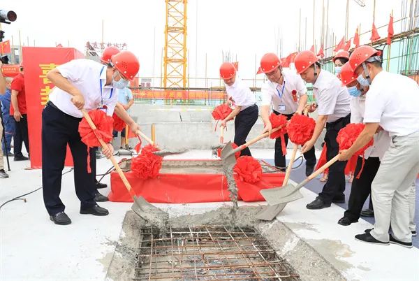 大樓的封頂標志著項目建設邁上新臺階,也為喜迎黨的二十大勝利召開獻上了一份特殊的禮物。
