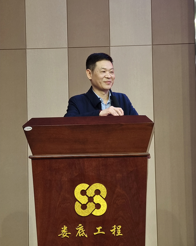 5副總經理顏克靈宣讀關于“2020年下半年項目績效考核情況的通報"和"關于2020年第四季度項目經理、技術負責人績效工資考核情況通報"